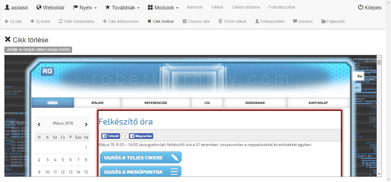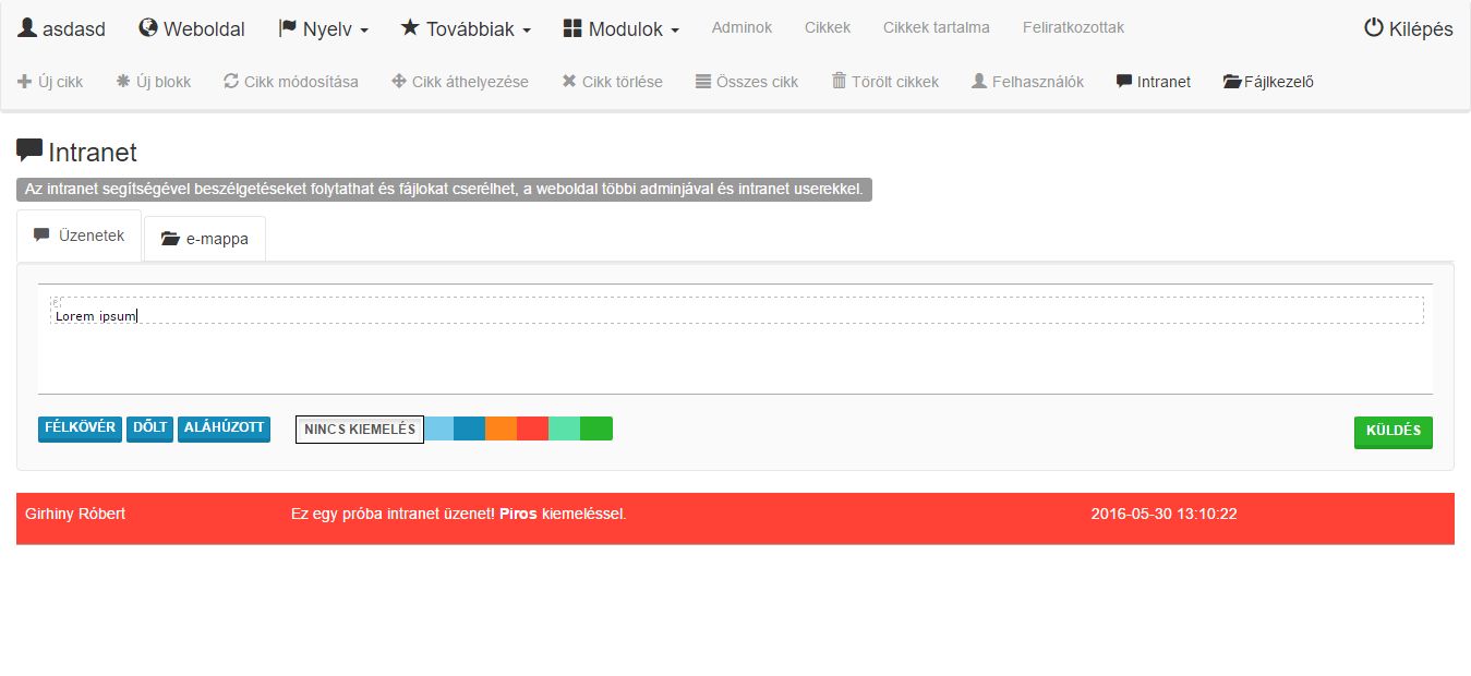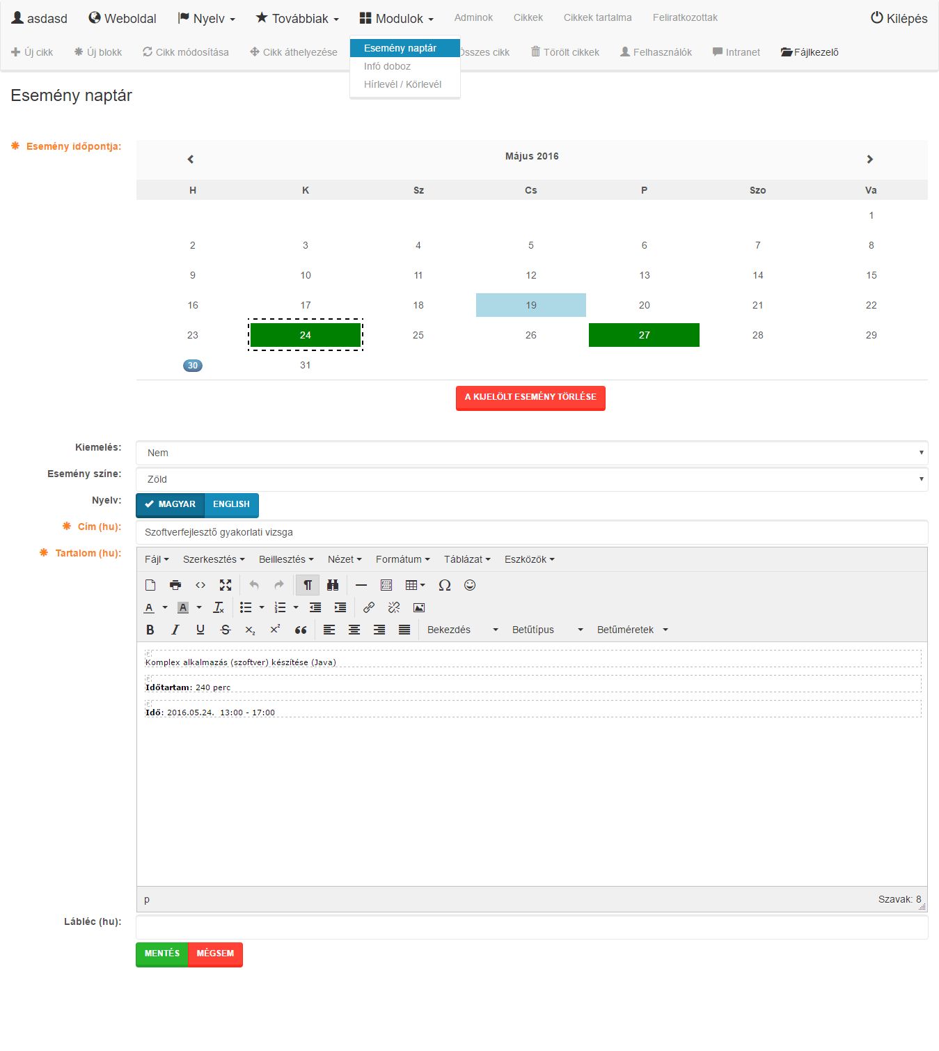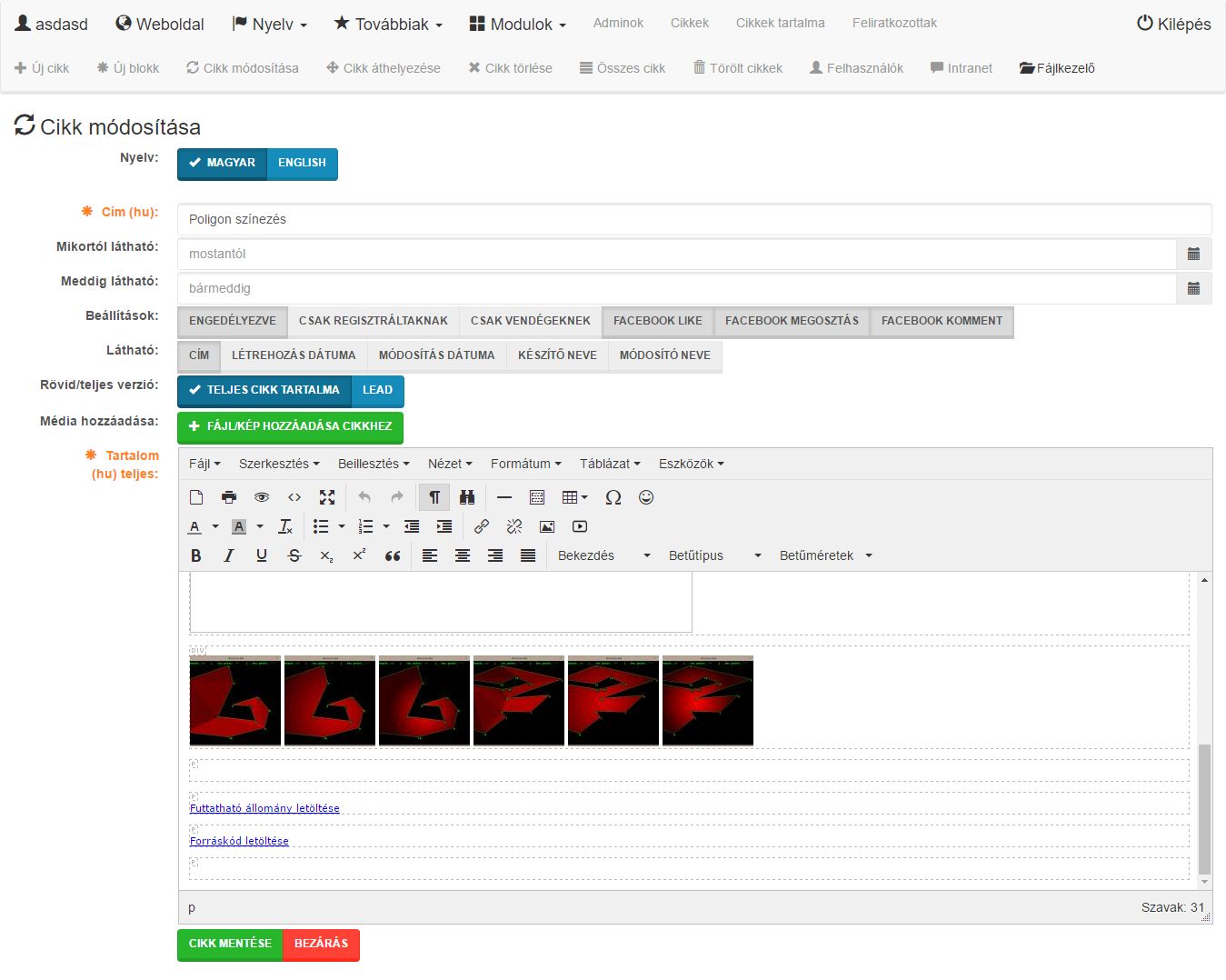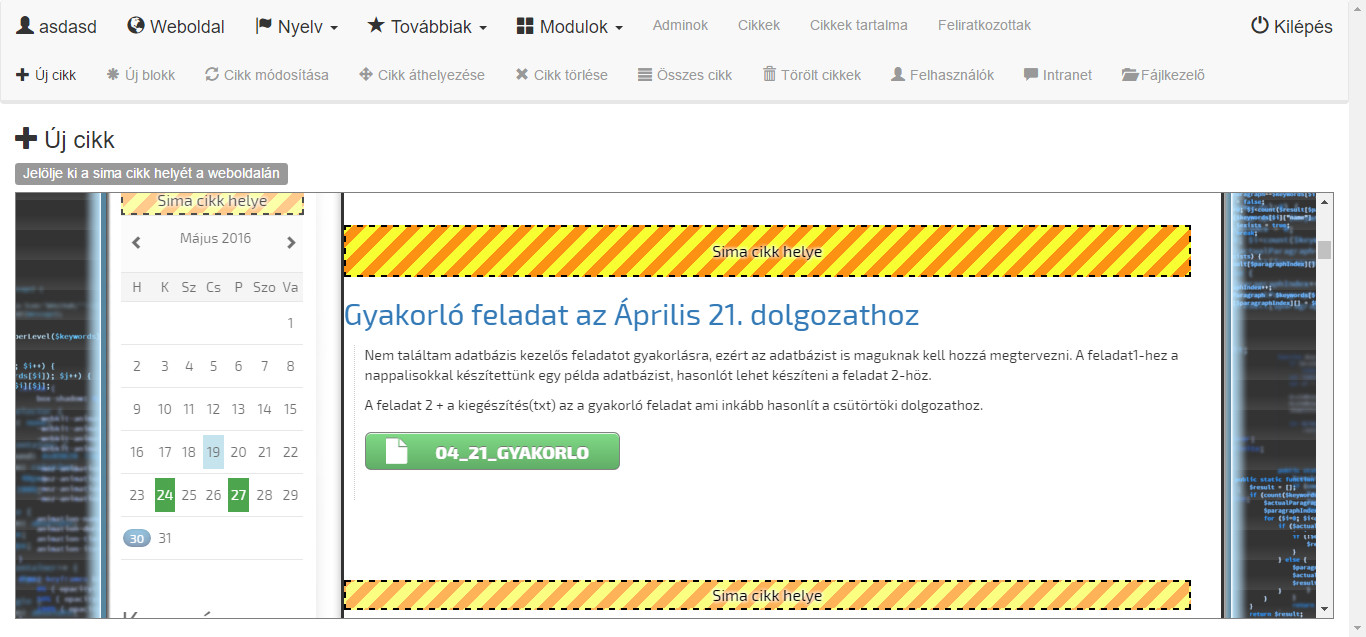 A CMS rendszer a Laravel keretrendszer fölé épült. Több információt viszont nem szeretnék róla leírni, állásinterjún szívesen mutatok belőle részleteket.